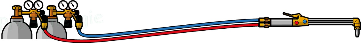 Montage donné à titre indicatif pour des chalumeaux de soudage, brasage et oxycoupage. Le choix des clapets, anti-retours et / ou pare-flammes est à adapter en fonction du poste de travail, du type de chalumeau et du débit de gaz.