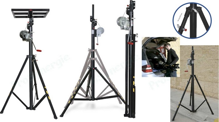 Sa conception simple et compact, avec base pliante et réglable (style parapluie), fait du modèle GAL110635 un complément idéal pour tout type de levage dans un espace de travail limité à l’extérieur et à l’intérieur.