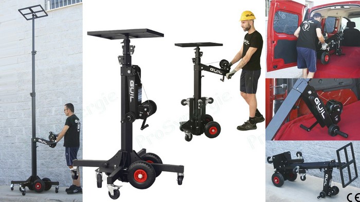 Modèle de lève climatisation GAL110634 permet de monter une charge de 125 kg jusqu’à 4,50 m de hauteur (avec le plateau de chargement). Empattement compact de 38 x 30 cm et hauteur de rangement réduite à seulement 1,32 m.