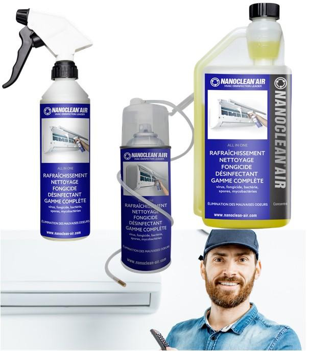 Les produits chimiques ou nettoyants, désinfectant, dégraissants contribuent à l'hygiène globale des systèmes de climatisation et, par conséquent, des locaux qu'ils desservent. Ils contribuent également au bon fonctionnement et à la longévité de ces appareils.